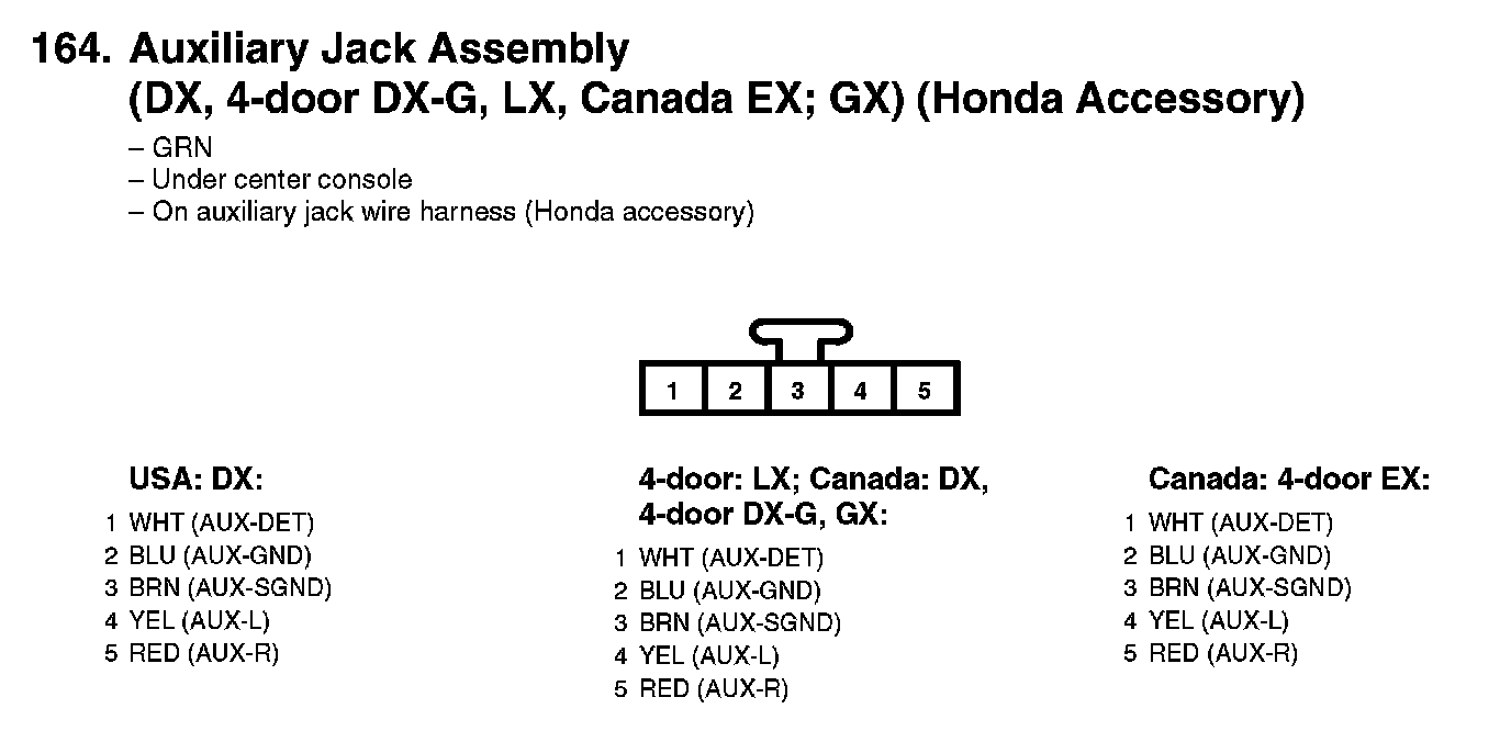 163. Auxiliary Jack Assembly ('06 USA 4-door: EX; '06 2-door: DX-G, LX, EX, Si; '07 4-door: EX, Si, DX-G, USA LX):