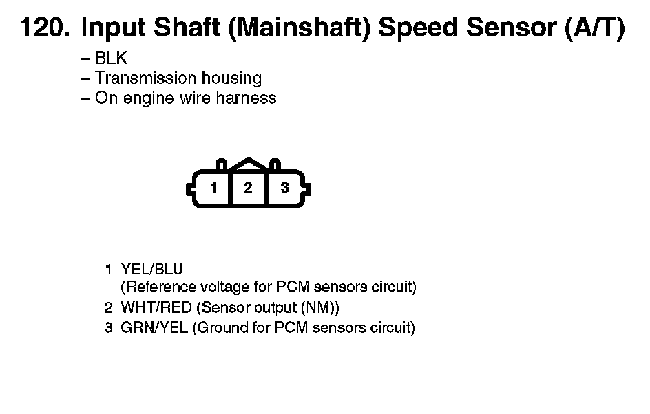 120. Input Shaft (Mainshaft) Speed Sensor (A/T):