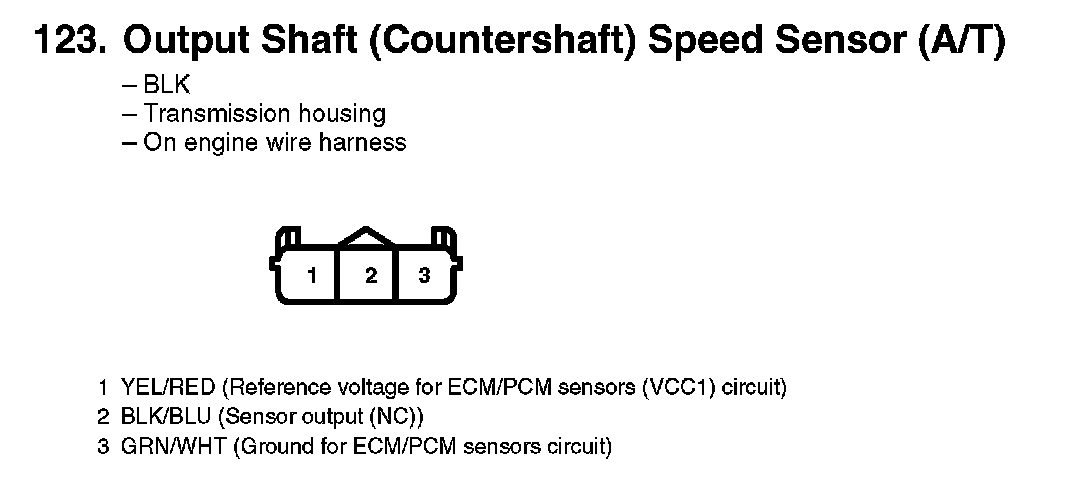 123. Output Shaft (Countershaft) Speed Sensor (A/T):