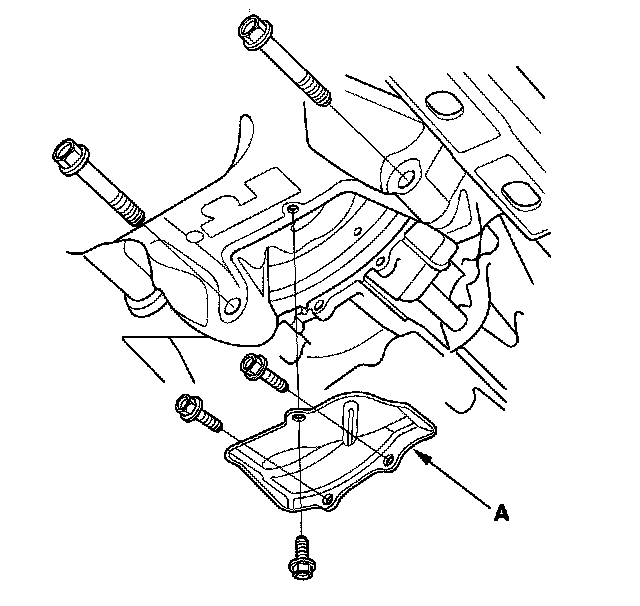 15. Remove the clutch cover/torque converter cover (A), and remove the two bolts securing the transmission.