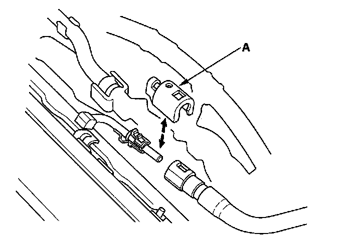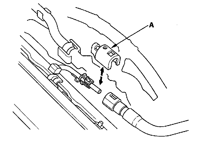 6. Remove the quick-connect fitting cover (A), then disconnect the fuel feed hose.