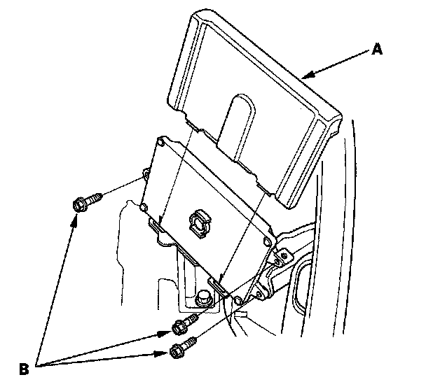 13. Remove the engine control module (ECM)/powertrain control module (PCM) cover (A), then remove the three bolts (B) securing the ECM/PCM.