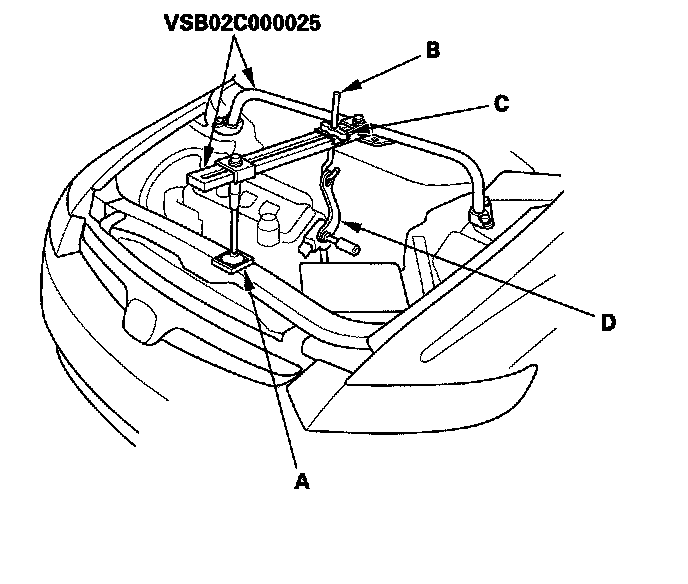 24. Install the power steering (P/S) line on the clamp (A), then install the P/S line brackets (B) on the subframe.