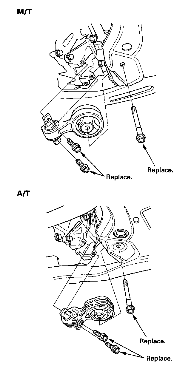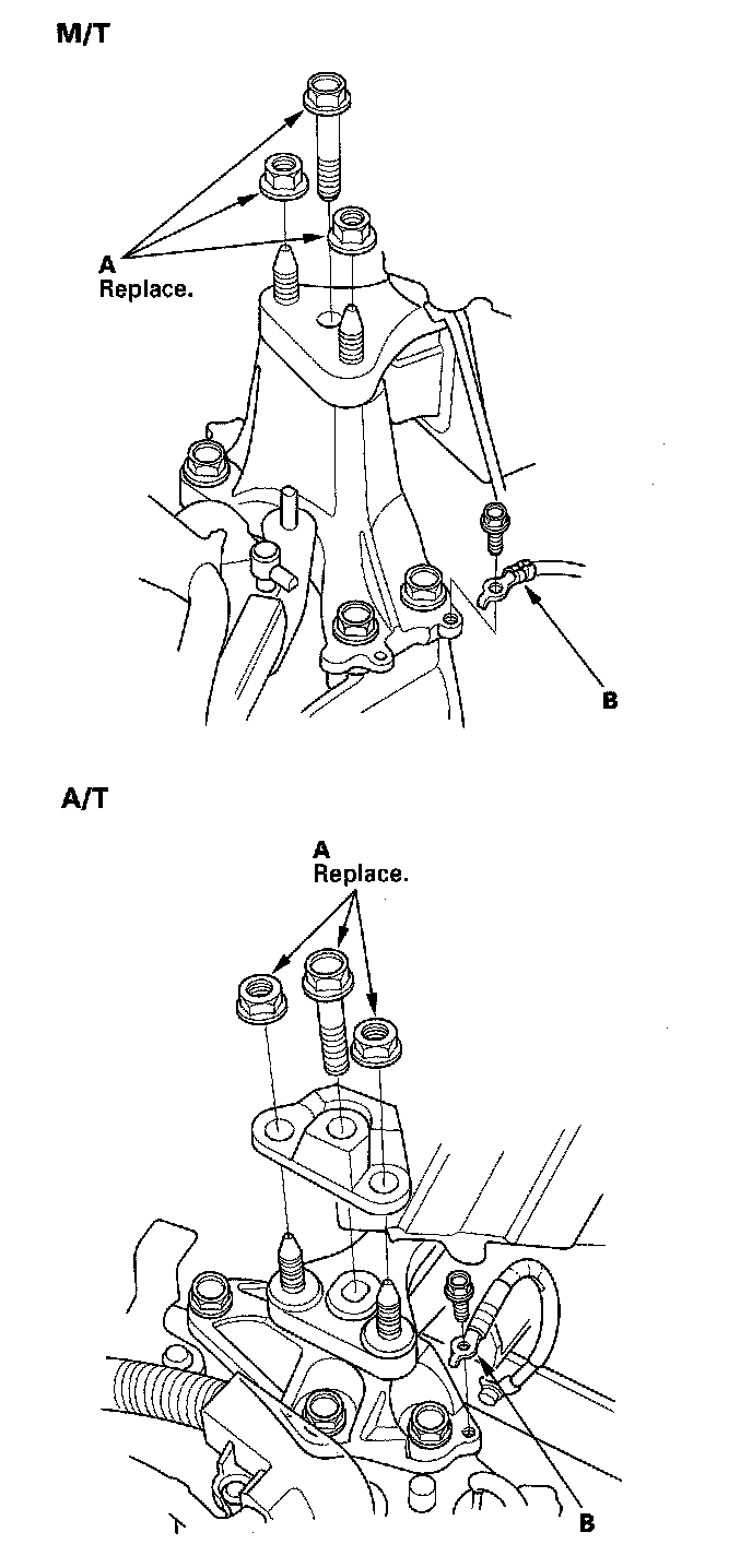 NOTE: Reinstall the mounting bolts/support nuts in the sequence given in the following steps. Failure to follow this sequence may cause excessive noise and vibration, and reduce engine mount life.