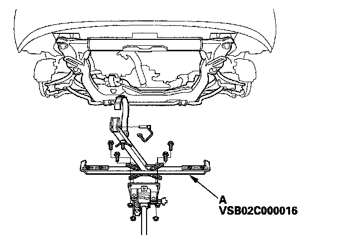 11. Using the front subframe adapter (A) and a jack, raise the front subframe up to body.