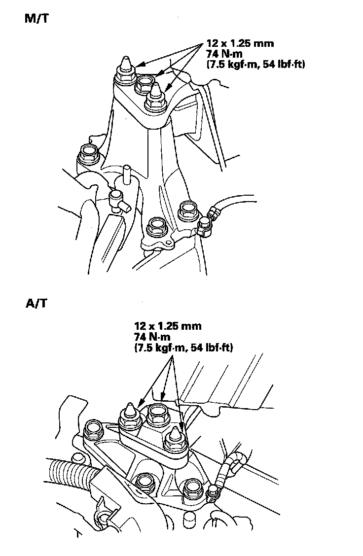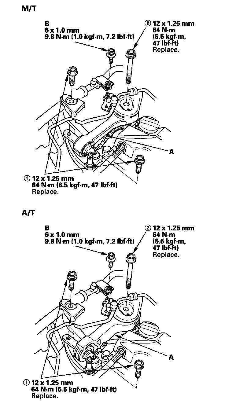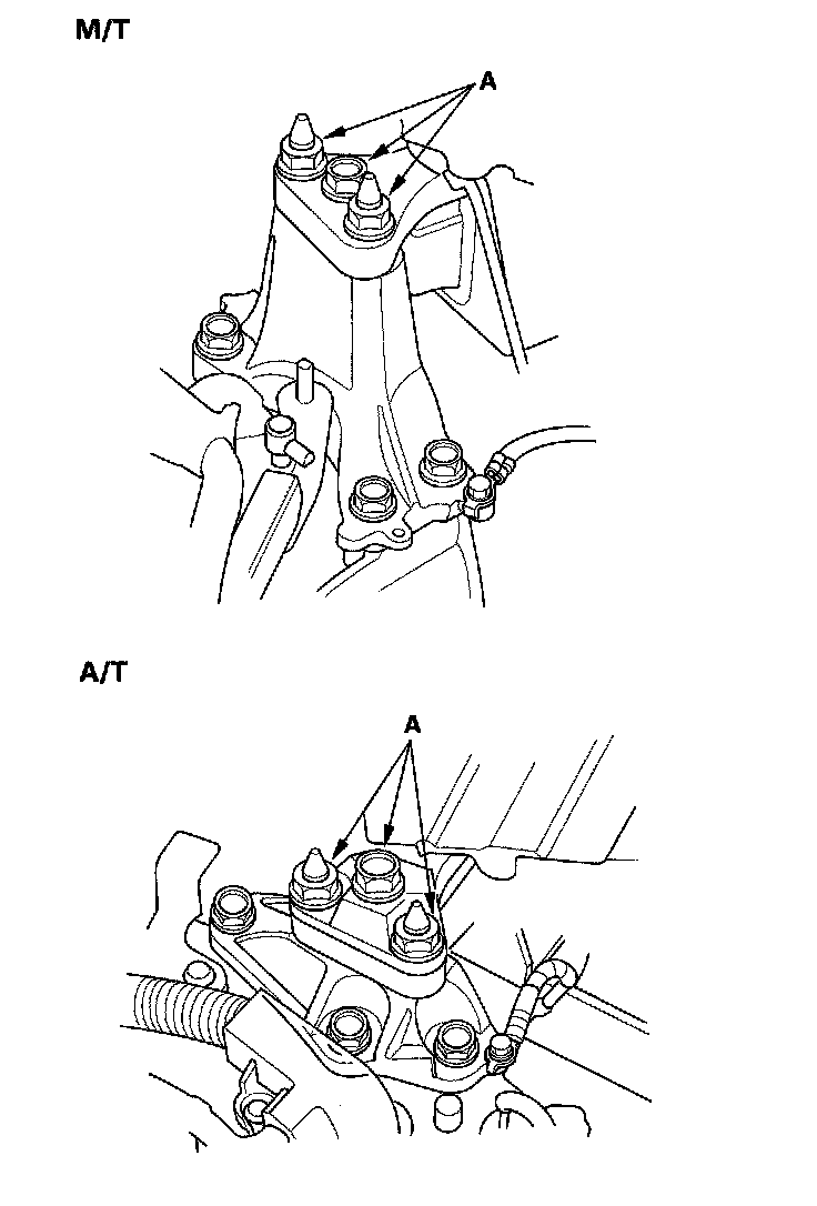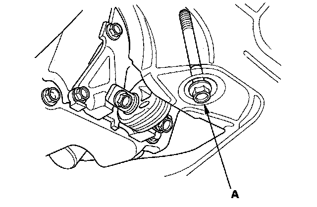 28. Install the upper torque rod (A), then tighten the new upper torque rod mounting bolts in the numbered sequence shown.