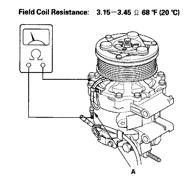 5. Disconnect the field coil connector (A). Check resistance of the field coil. If resistance is not within specifications, replace the field coil.