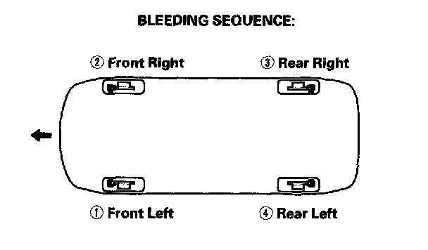 NOTE: Bleed the calipers or the wheel cylinders in the sequence shown.