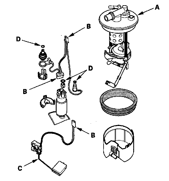 - When installing the fuel gauge sending unit (C), make sure the connection is secure and the connector is firmly locked into place. Be careful not to bend or twist it excessively.