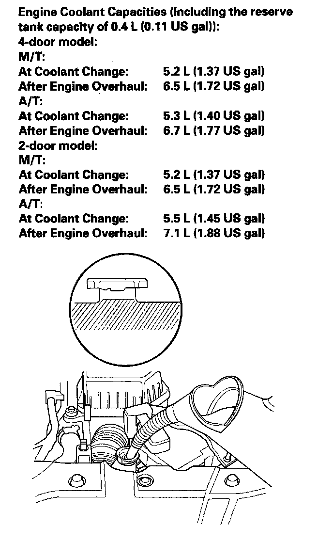 ^ Honda Long Life Antifreeze/Coolant Type 2 is a mixture of 50 % antifreeze and 50 % water. Do not add water.