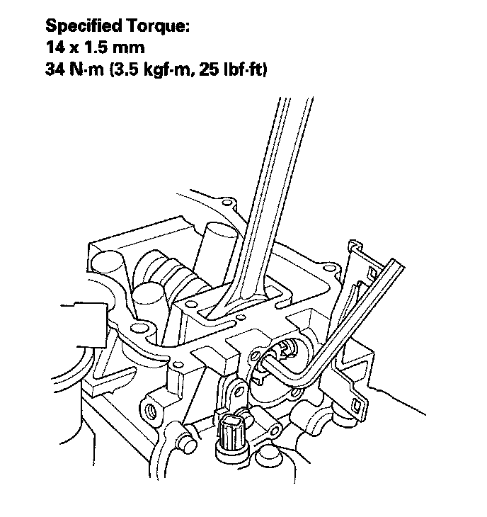 2. Hold the camshaft with a 27 mm open-end wrench, then tighten the bolt.