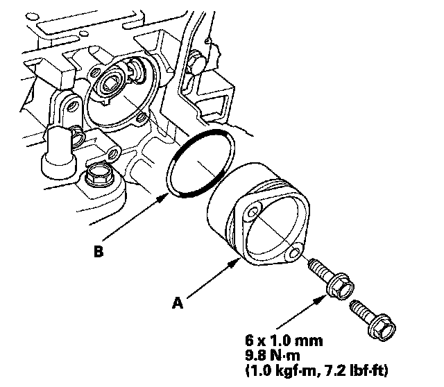 3. Install the camshaft thrust cover (A), use a new O-ring (B).