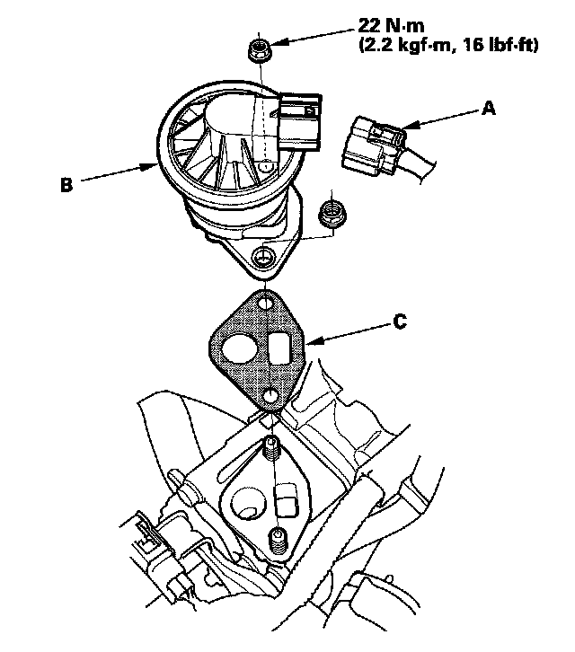 4. Install the parts in the reverse order of removal with a new gasket (C).