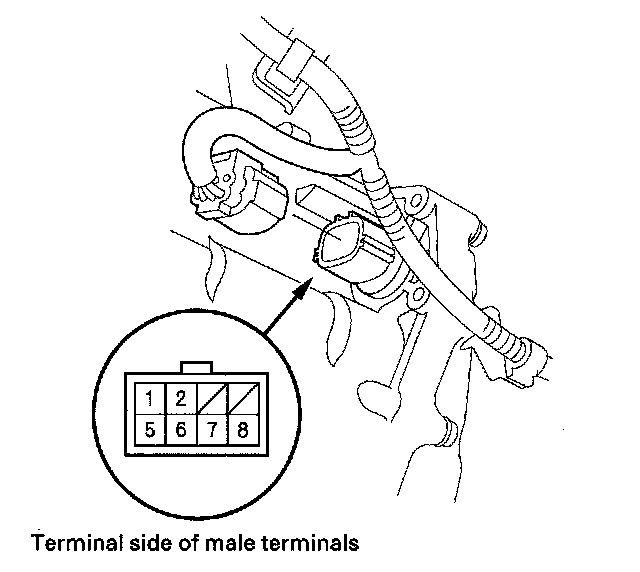 ^ If the resistance is within the standard, go to step 8 and check solenoid valve for a clicking sound.