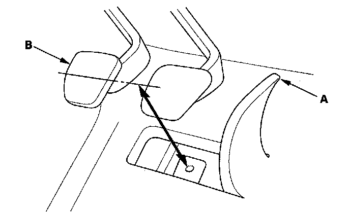 1. Lift up the carpet (A). At the insulator cutout, measure the pedal height from the right side of the pedal pad (B).