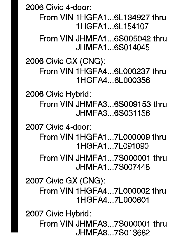 During vehicle assembly, the steering column telescopic mechanism may have been over-lubricated with silicone grease. Over time, some of this grease could form into oil droplets that drip onto the brake pedal position switch connector. If this happens, the brake pedal position switch may fail, resulting in no brake lights, and an increased risk of a rear-end collision. In addition, a failed brake light switch could prevent the shift lever from moving out of Park (vehicles with A/T) or disable the auto-stop feature (Civic Hybrids).