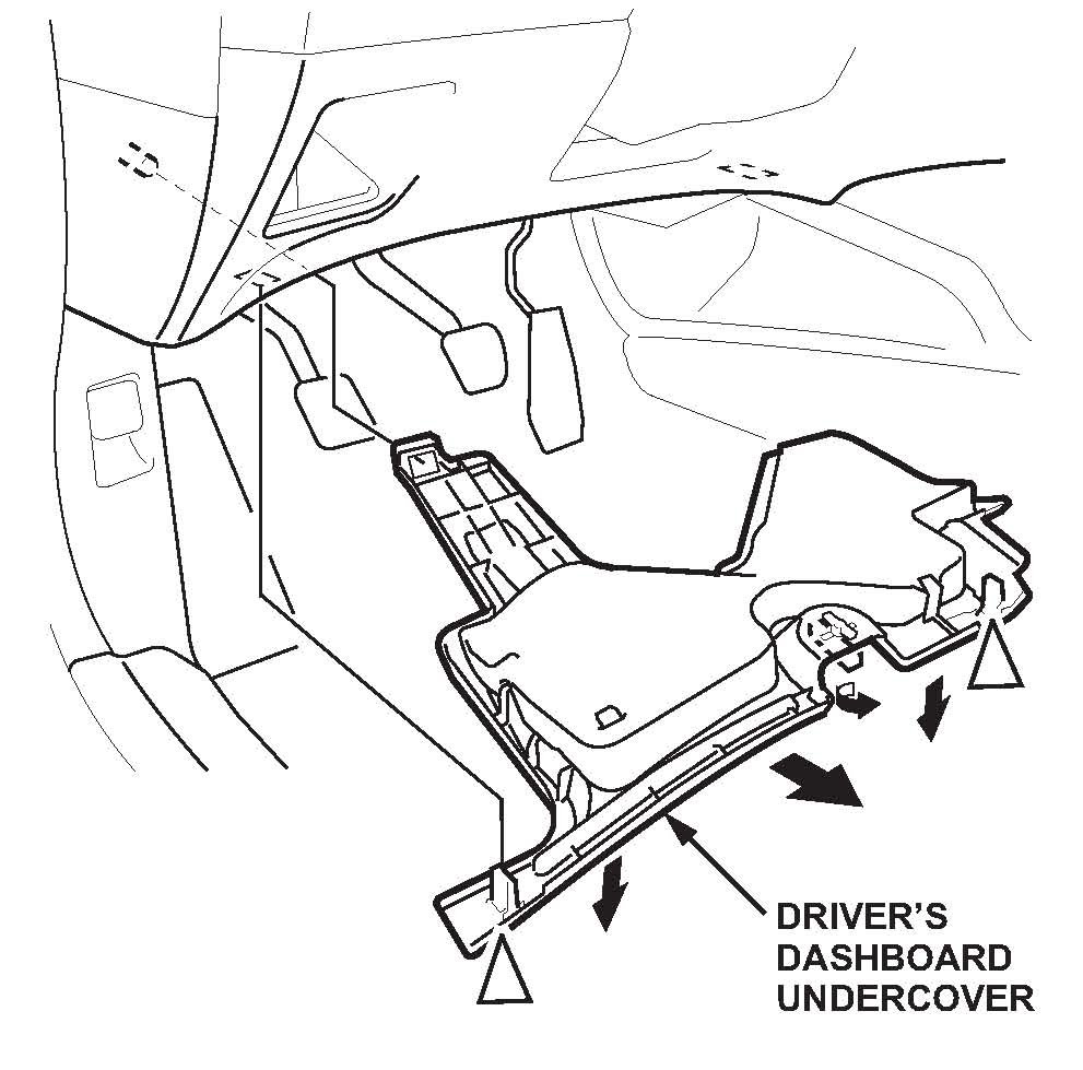 14. Reconnect the negative cable to the 12 V battery, then enter the audio anti-theft code or the navigation system code (if equipped).