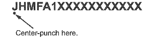 16. Center-punch a completion mark below the first character of the engine compartment VIN: