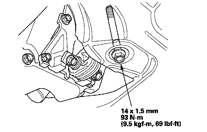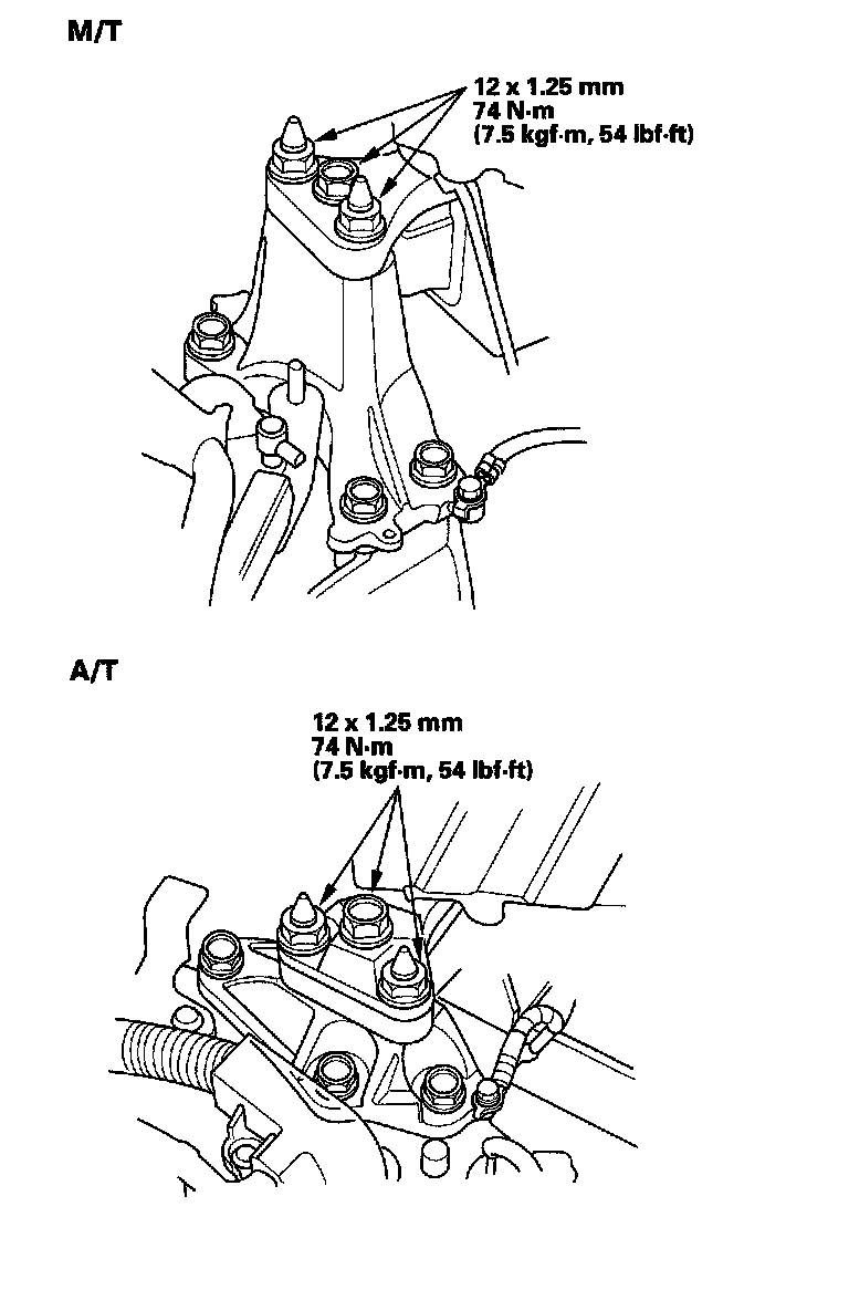13. Tighten the transmission mounting bolt and nuts.
