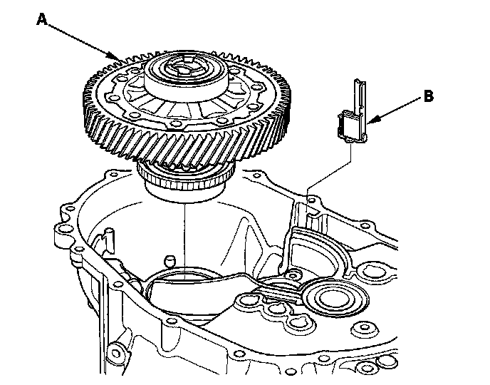 15. Remove the differential assembly (A) and magnet (B).