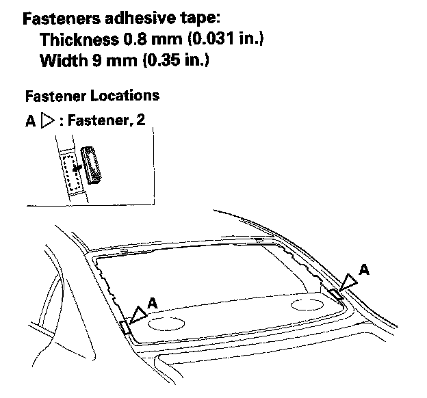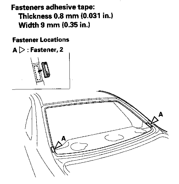14. Attach the fasteners (A) with adhesive tape to the rear window opening flange of the body on both sides.