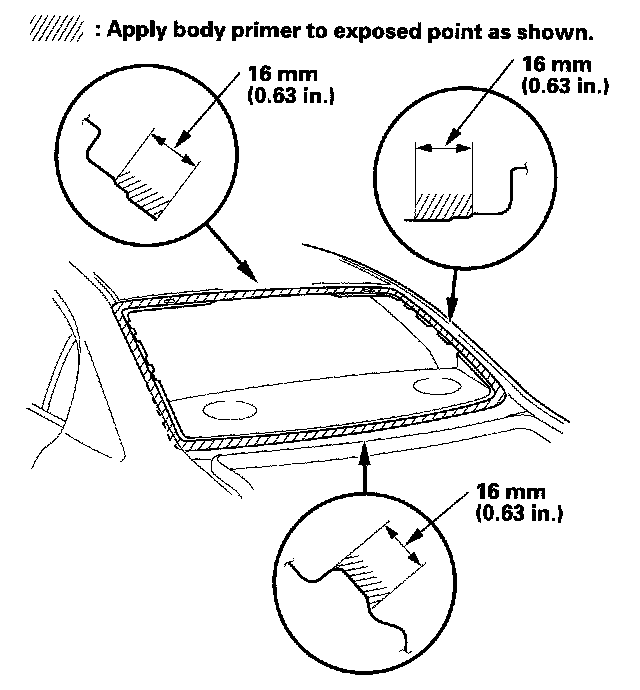 - Never touch the primed surfaces with your hands. If you do, the adhesive may not bond to the rear window properly, causing a leak after the rear window is installed.