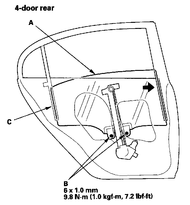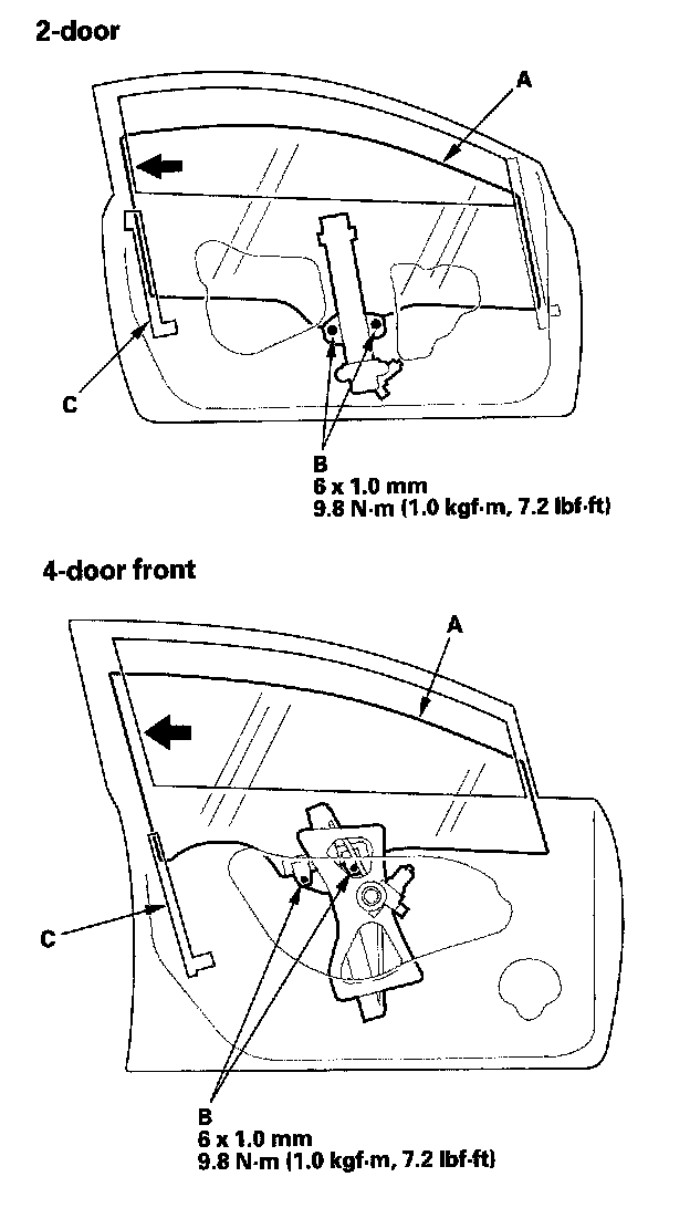Front and Rear Door Glass AdjustmentNOTE: Check the weatherstrip and glass run channel for damage or deterioration, and replace them if necessary.