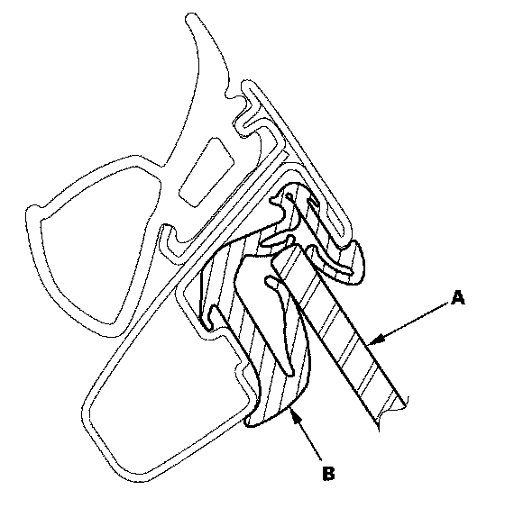 6. Raise the glass fully, and check for gaps. Also make sure that the glass (A) contacts the glass run channel (B) evenly.
