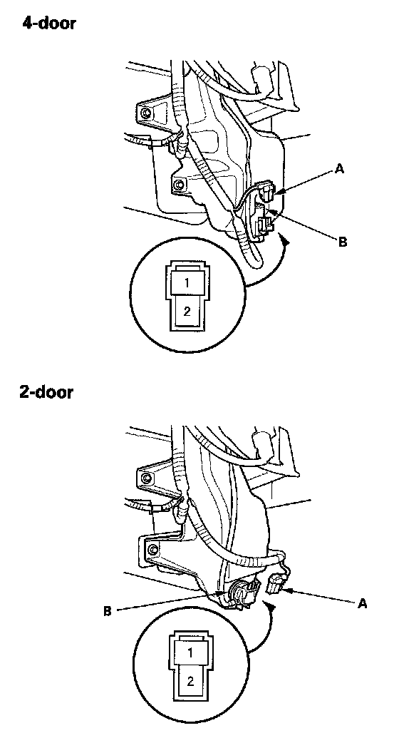 3. Test the motor by connecting battery power to the No.1 terminal and ground the No.2 terminal of the washer motor. The motor should run.