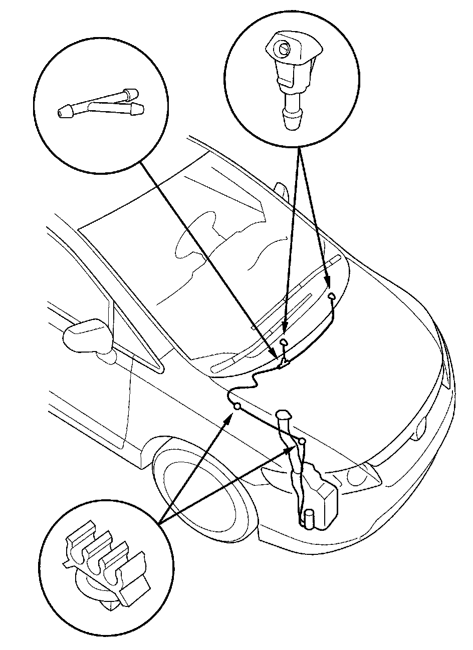 2. Remove the washer nozzles and clips, then remove the tubes.
