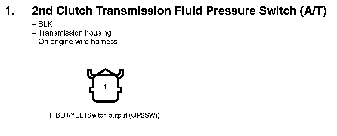 1. 2nd Clutch Transmission Fluid Pressure Switch (A/T):