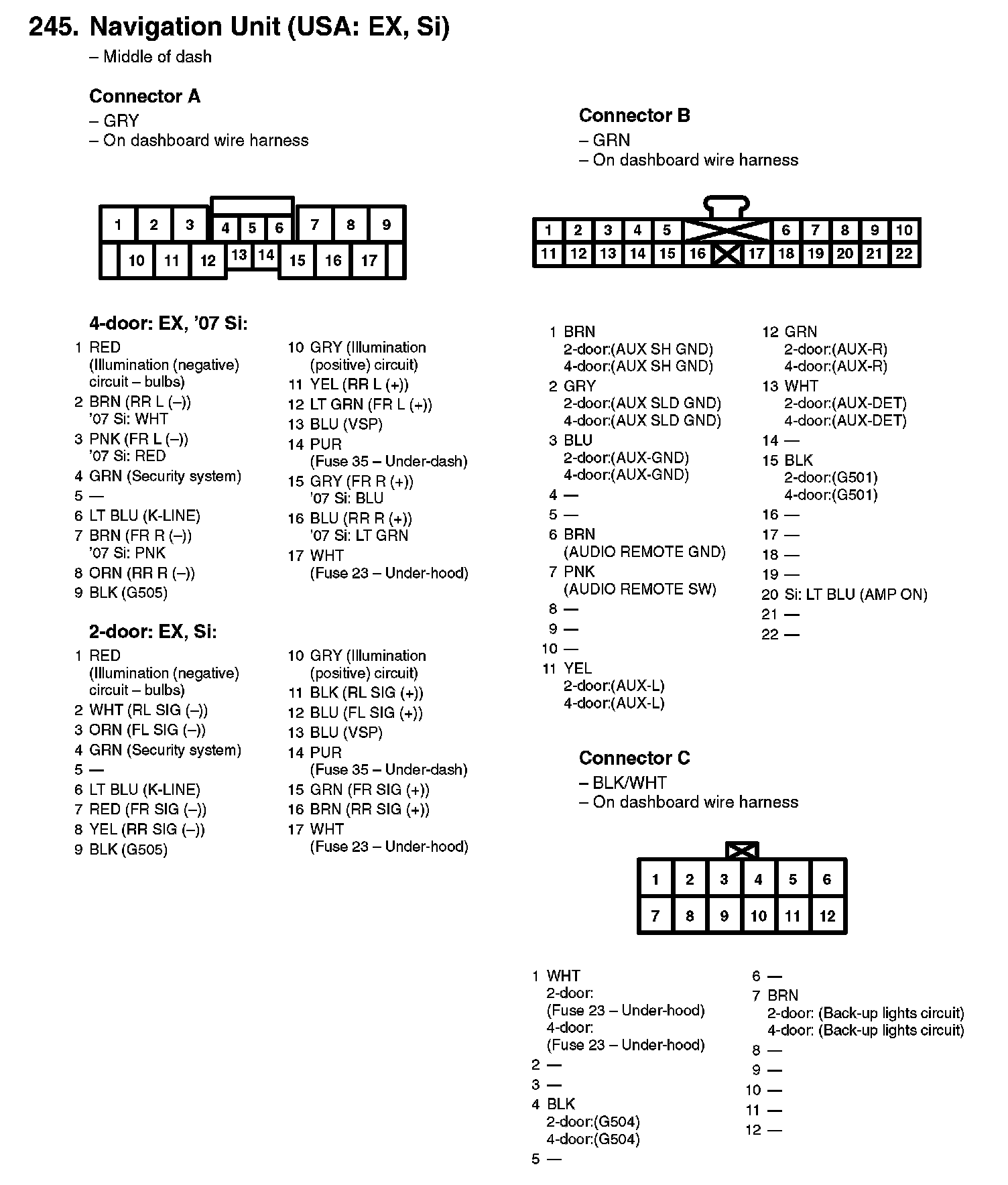Navigation Unit Inputs And Outputs For Connector C (12P):