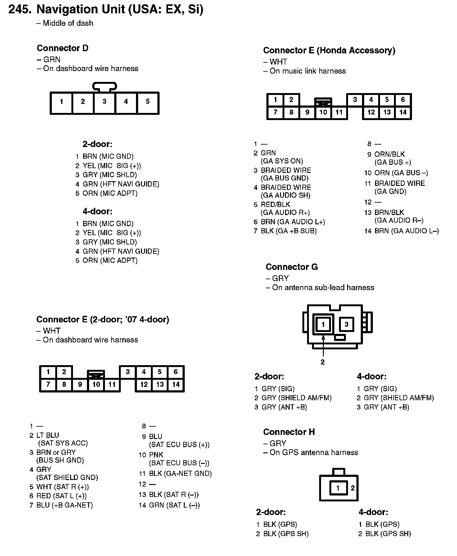 Navigation Unit Inputs And Outputs For Connector H (2P):
