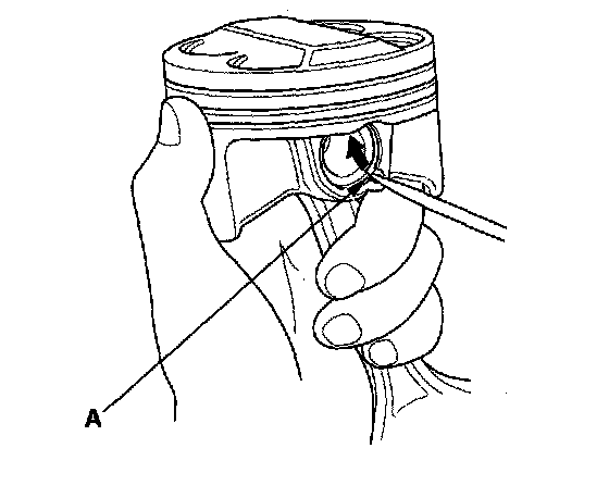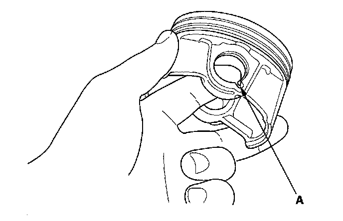 1. Install a piston pin snap ring (A).