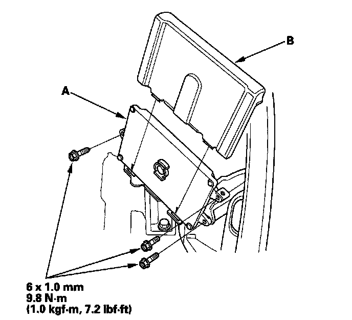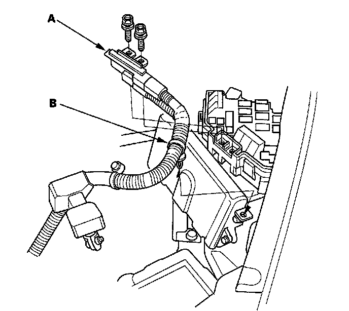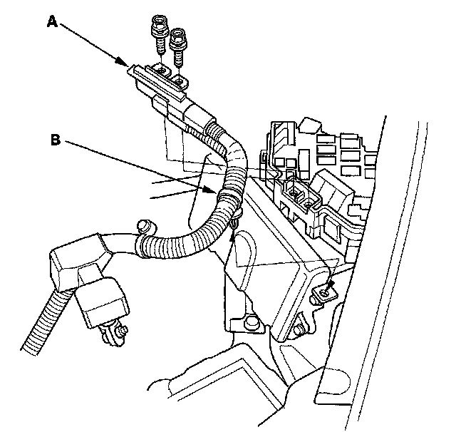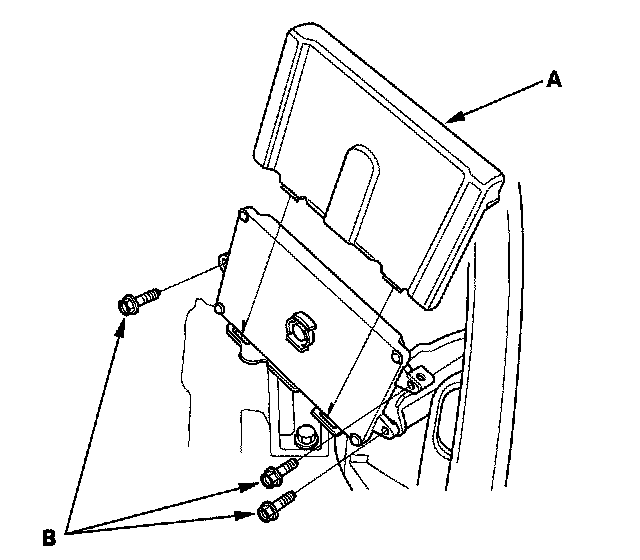 11. Remove the engine control module (ECM) cover (A), then remove the three bolts (B) securing the ECM.