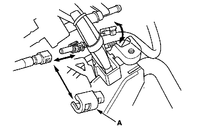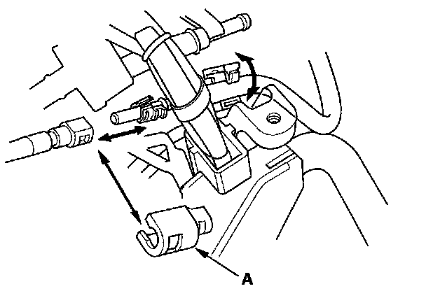 16. Remove the quick-connect fitting cover (A), then disconnect the fuel feed hose.