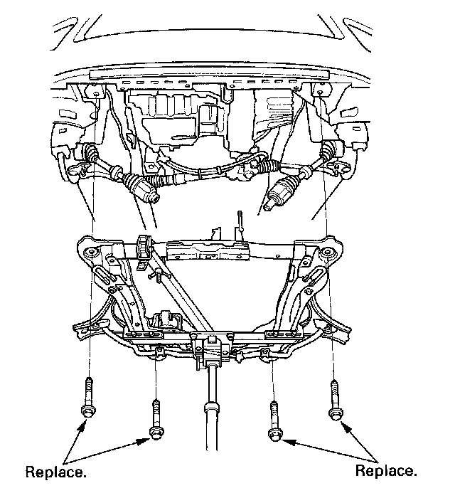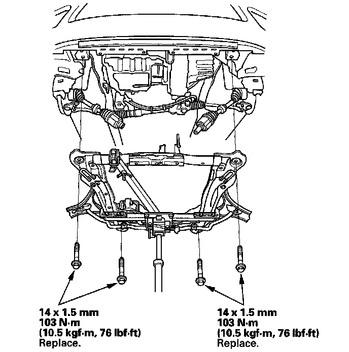 16. Tighten the new front subframe body mount bracket mounting bolts on both side.