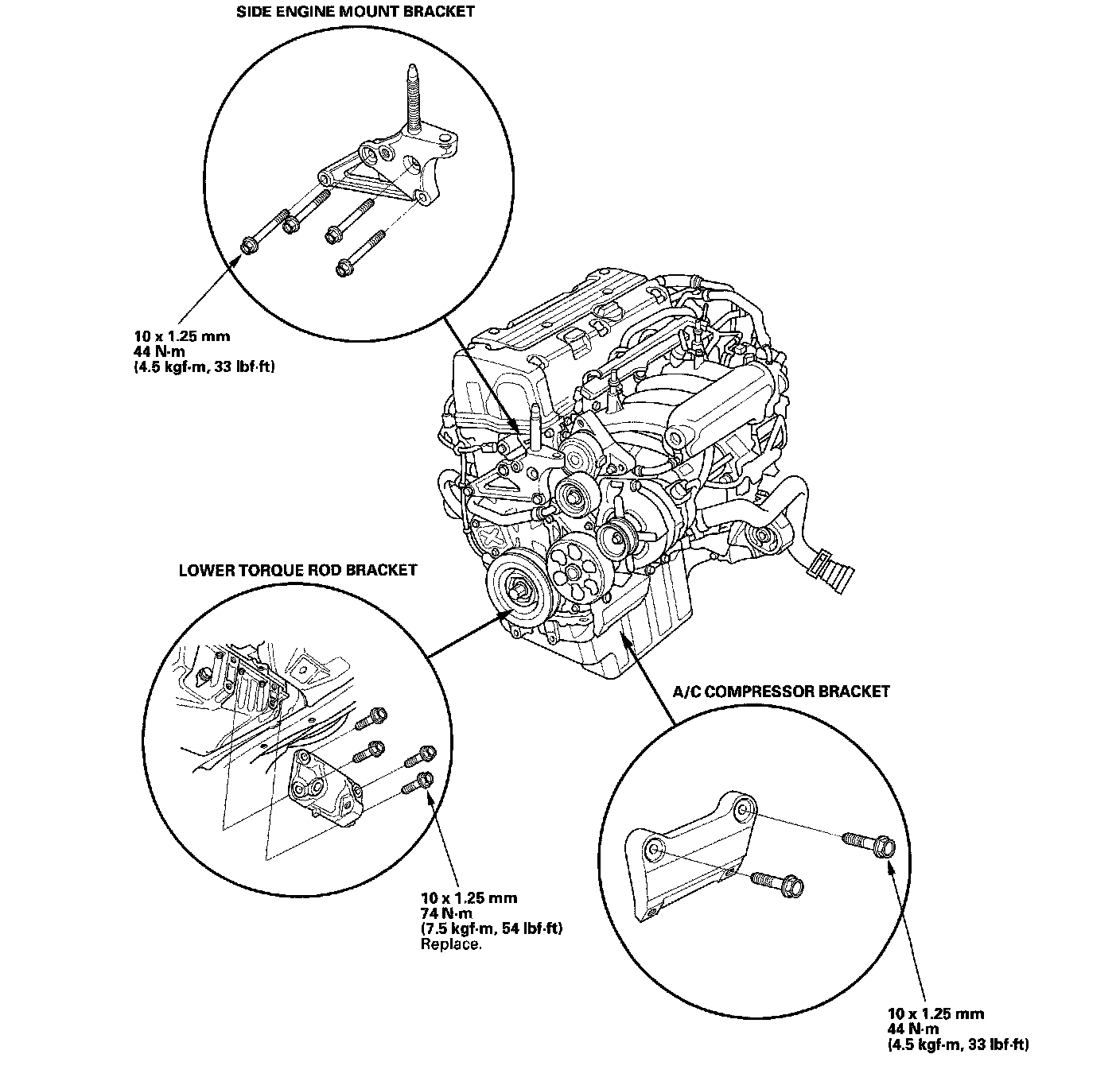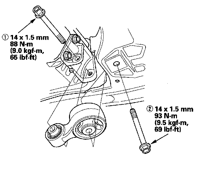NOTE: Reinstall the mounting bolts/support nuts in the sequence given in the following steps. Failure to follow this sequence may cause excessive noise and vibration, and reduce engine mount life.