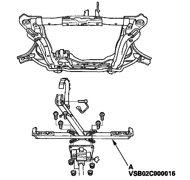 49. Loosen the front subframe body mount bracket mounting bolts (A) on both side.