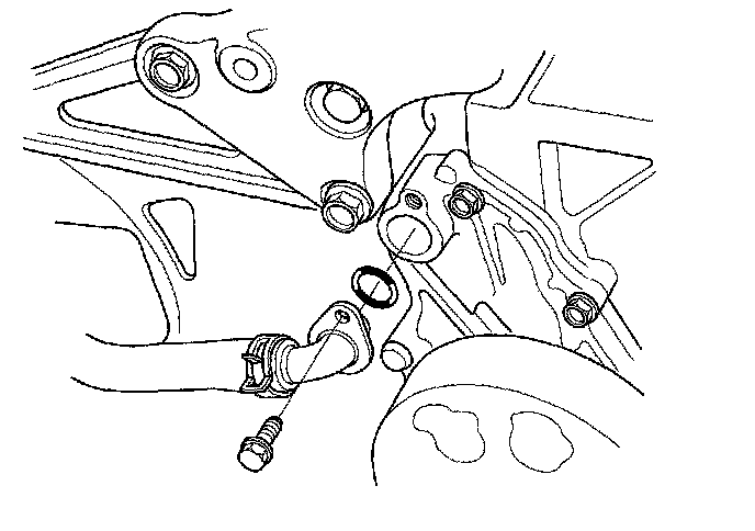 7. Remove the oil cooler hose joint pipe from the water pump.