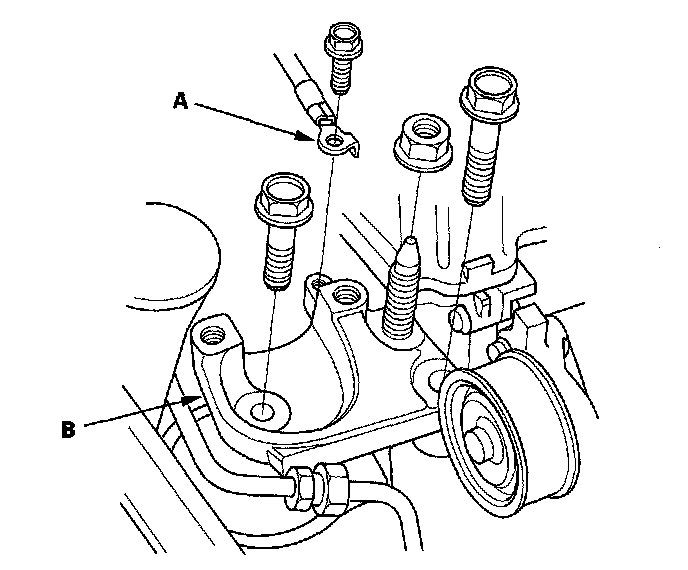 13. Remove the ground cable (A), then remove the side engine mount bracket (B).