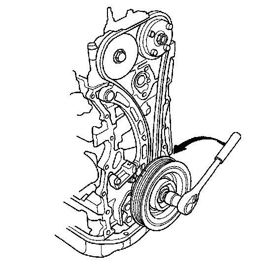 17. Turn the crankshaft counterclockwise to compress the auto-tensioner.