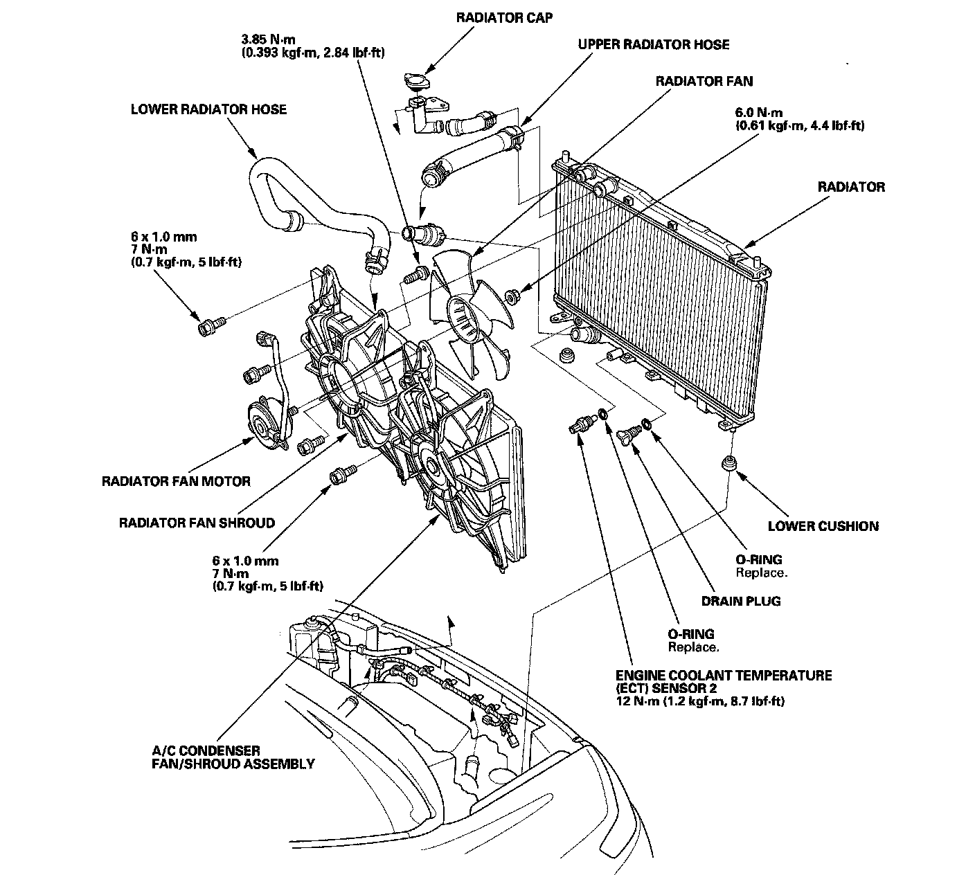 Radiator and Fan Replacement1. Make sure you have the anti-theft code for the audio system and the navigation system (if equipped), then write down the audio presets.
