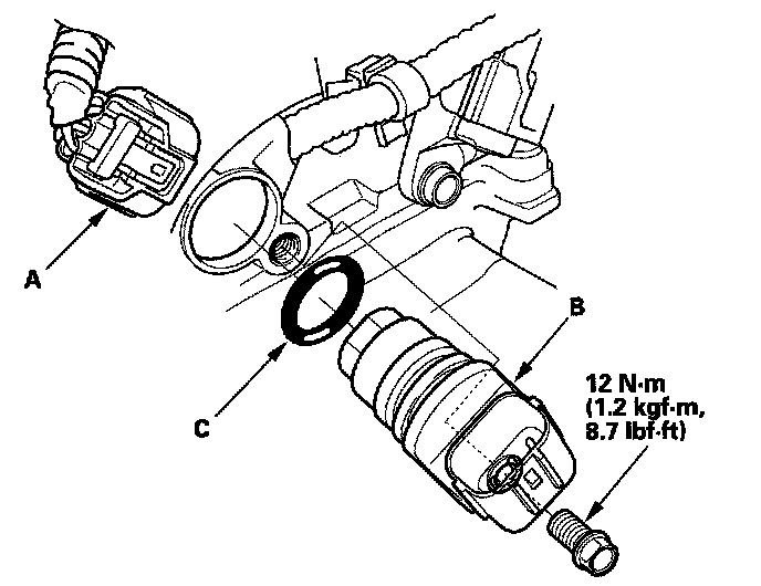 4. Install the parts in the reverse order of removal with a new O-ring (C).