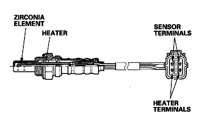 The A/F sensor operates over a wide air/fuel range. The A/F sensor is installed upstream of the TWC; and sends signals to the ECM which varies the duration of fuel injection accordingly.