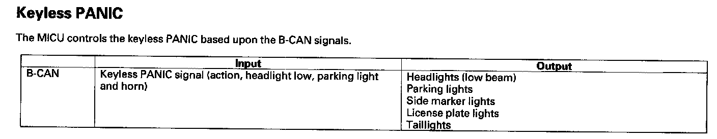 When any of the data from the B-CAN circuit cannot be received within a specified time, or an unusual combination of the data is recognized, the MICU moves to the software fail-safe mode. The data that cannot be received is forced to a pre-programmed value.