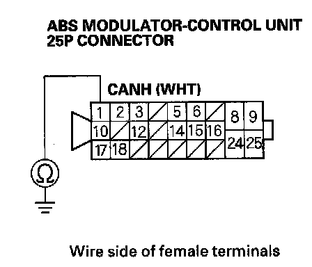 20. Check for continuity between ABS modulator-control unit 25P connector terminal No.17 and body ground.