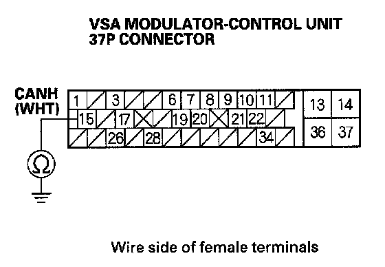 13. Check for continuity between VSA modulator-control unit 37P connector terminal No.15 and body ground.