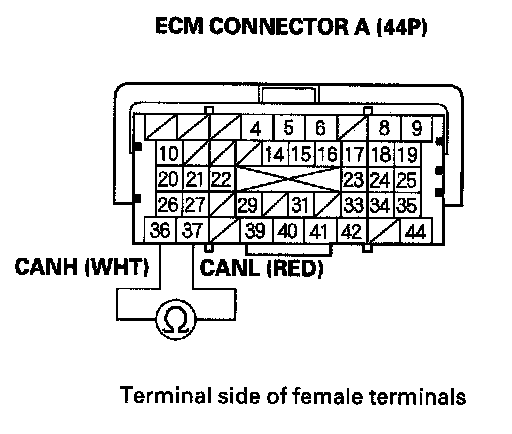 17. Remove the jumper wire from ECM connector A (44P).