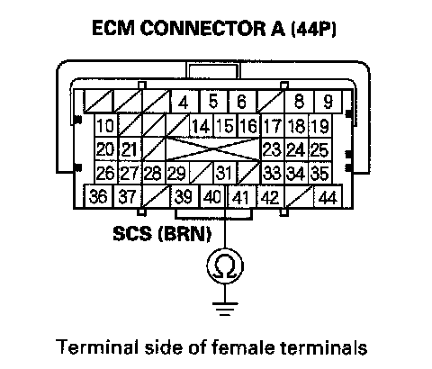 7. Check for continuity between ECM connector terminal A31 and body ground.